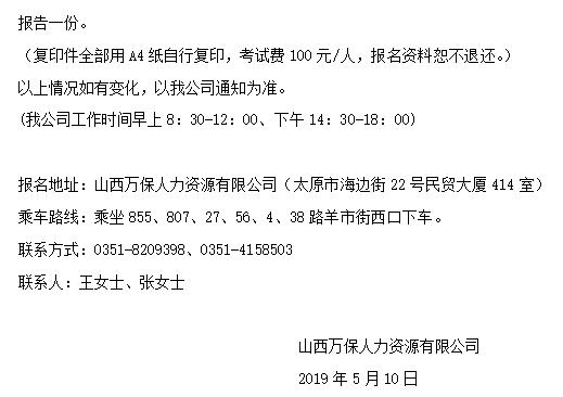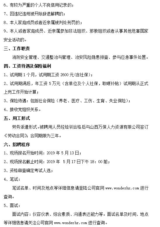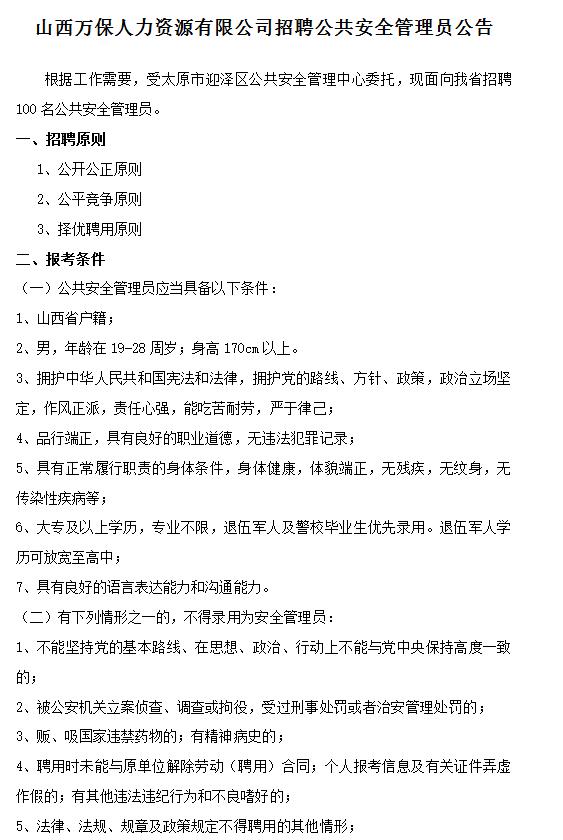 山西萬保人力資源有限公司招聘公共安全管理員公告